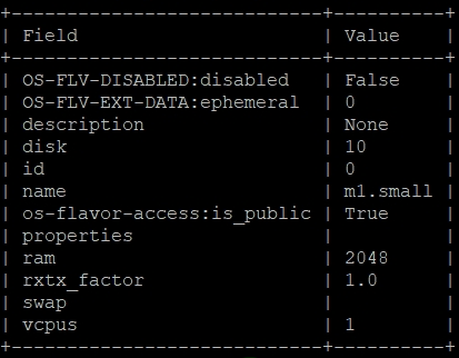 root@nw1 ~(keystone)# openstack flavor create --id 0 --vcpus 1 --ram 2048 --disk 10 m1.small