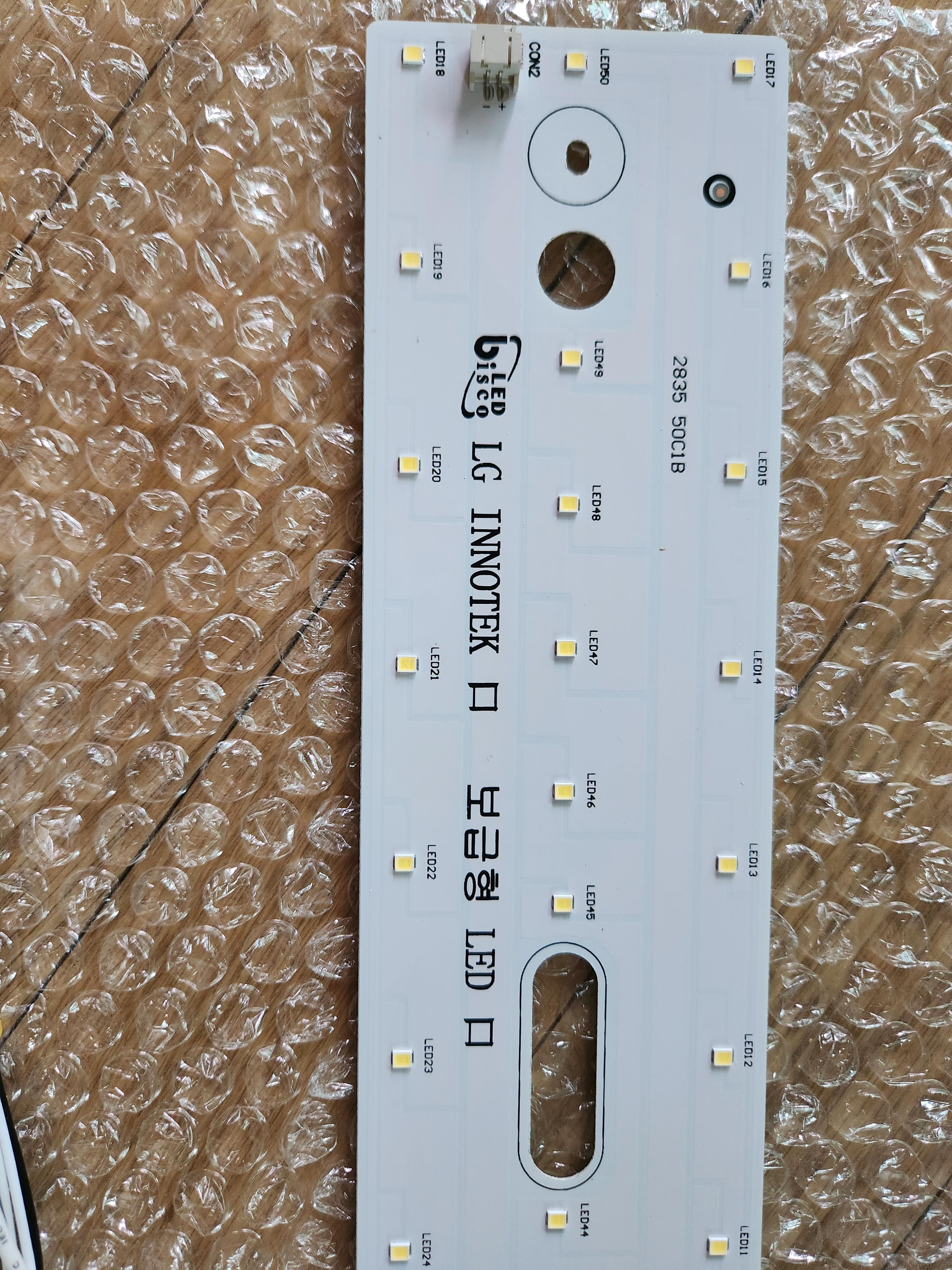 LG이노텍에서 생산한 LED 기판과 나사와 자석이 4개 들어 있습니다.