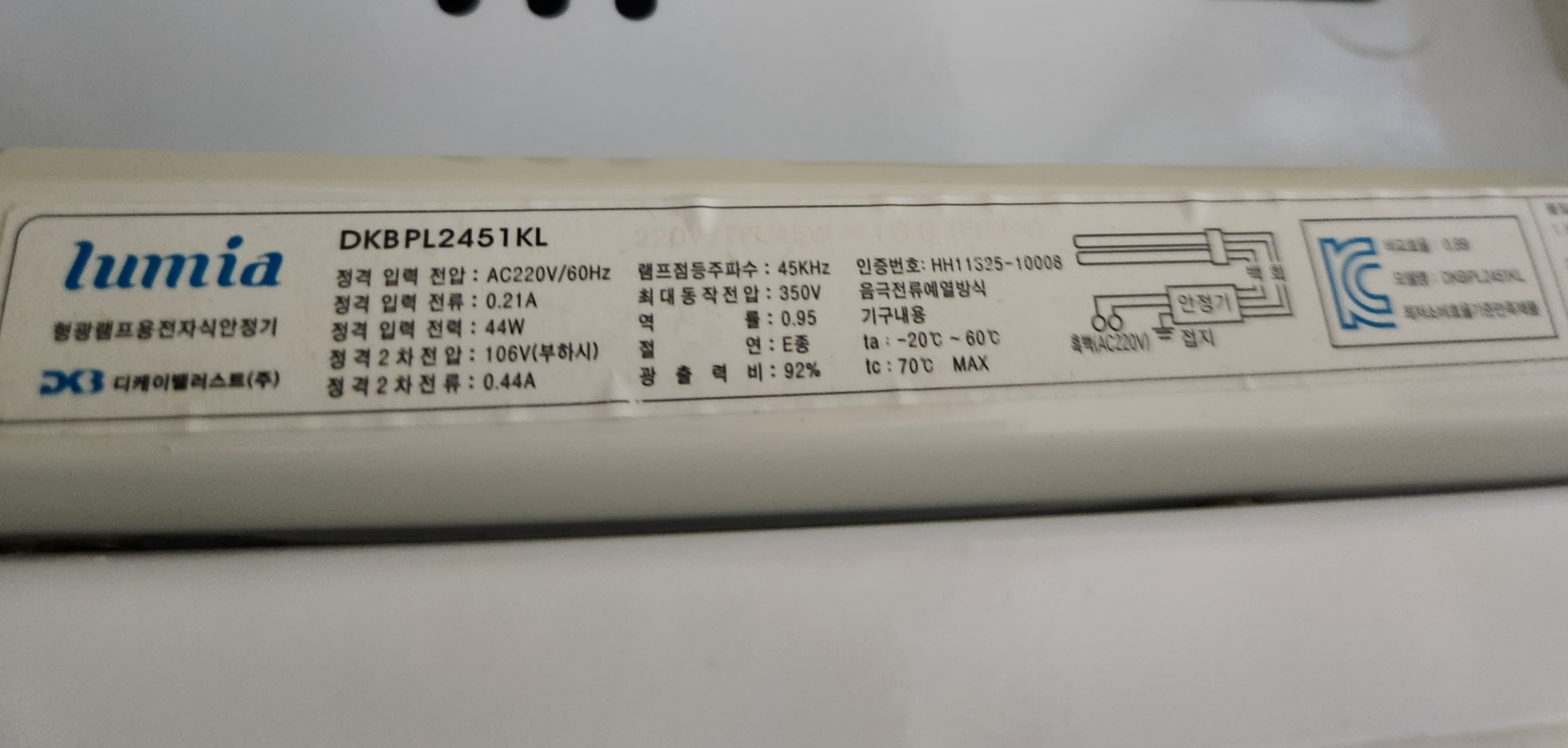 기존 설치되어 있는 안정기의 생산일자를 보니 일반적인 안정기의 수명은 10년 정도 되는 것 같습니다.