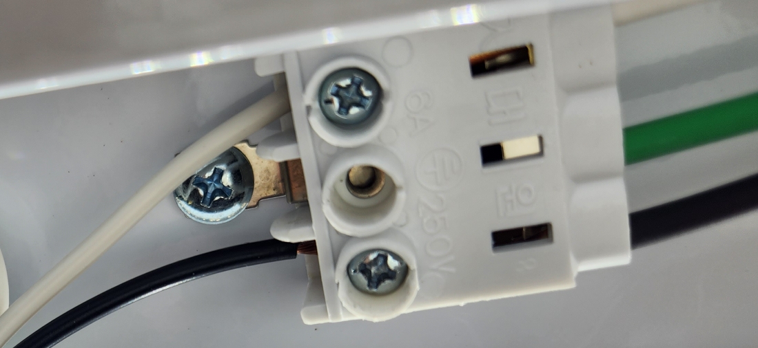 형광등 안정기는 2핀 단자와 연결되어 있는데요 이 단자는 위에 나사를 돌려 빼면 전선이 빠지는 구조로 되어있습니다.