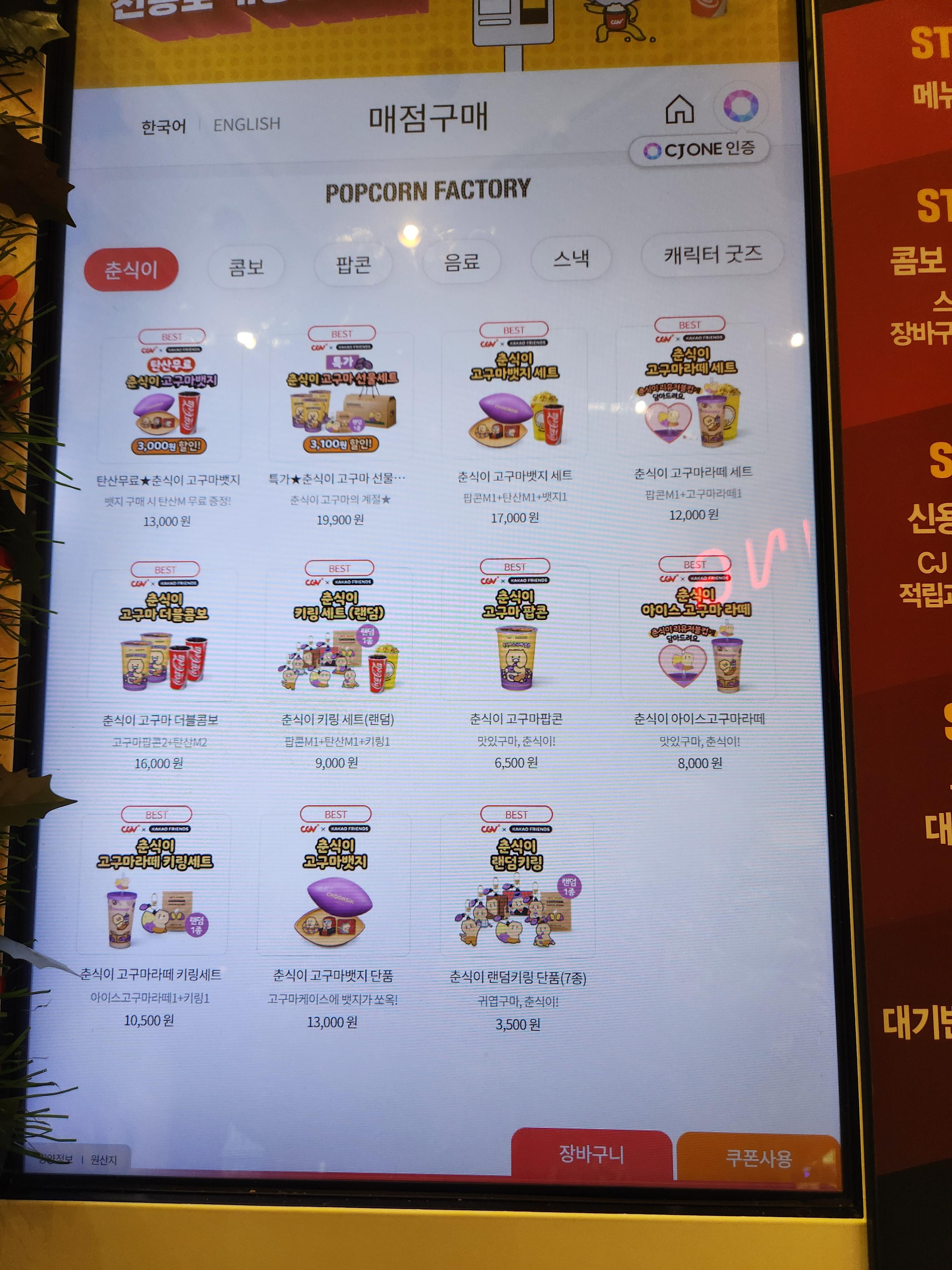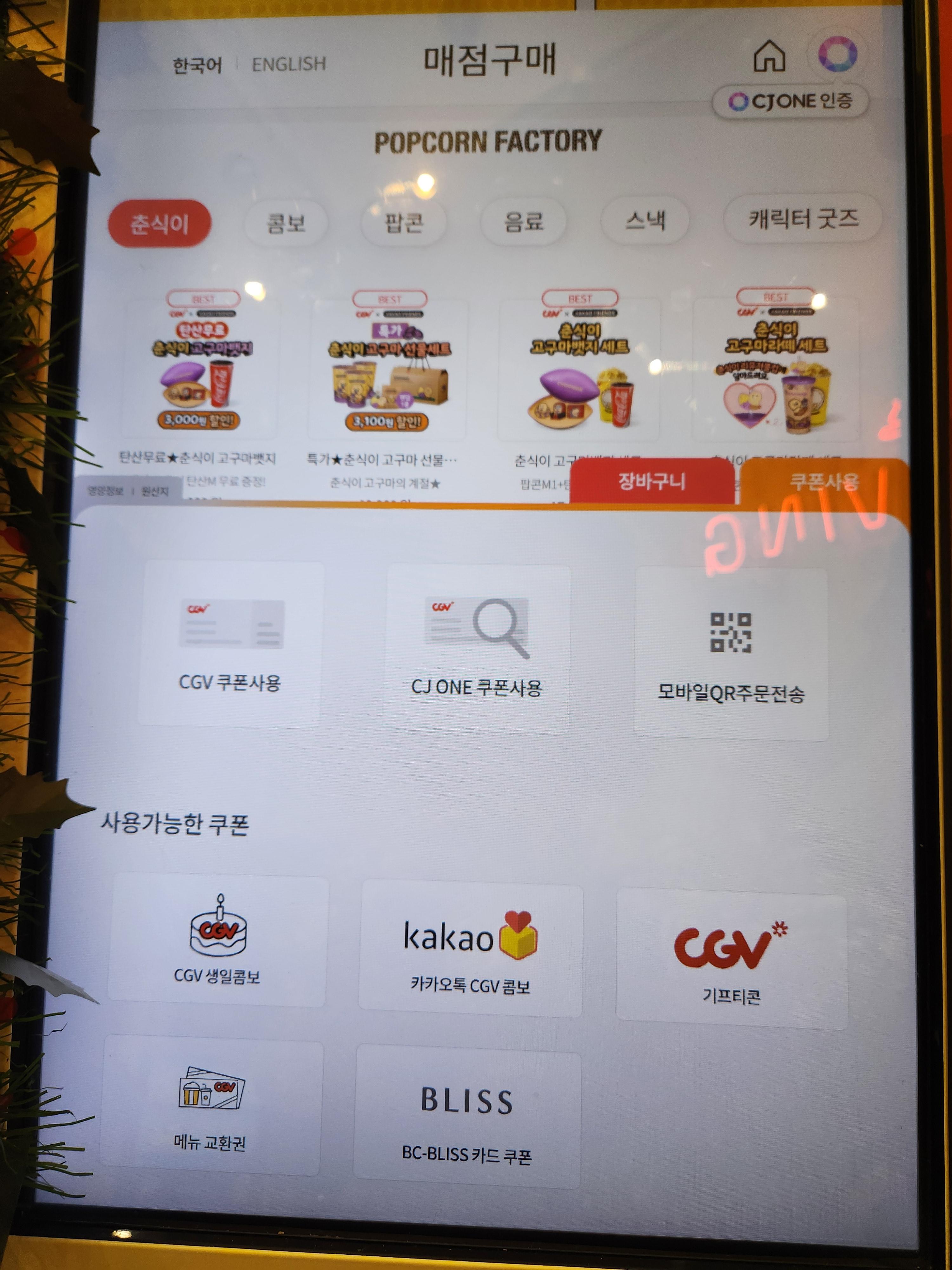 키오스크 메뉴에서 CGV 콤보 메뉴를 먼저 클릭하시면 안 됩니다. 제가 여기에서 헤매었어요.