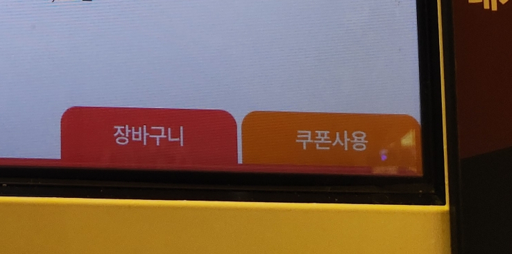 키오스크를 시작하자마자 우측 맨 아래에 쿠폰사용 버튼을 클릭합니다.